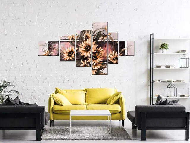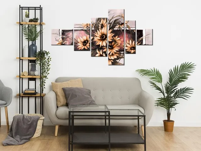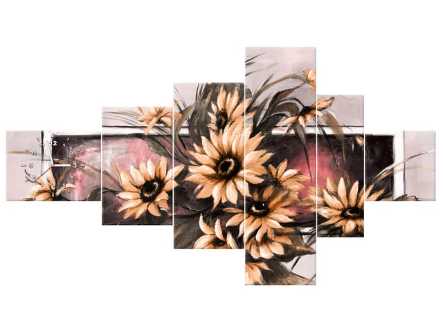 Úvod » Obrazy » Obrazy s hodinami » Obraz s hodinami Slnečnice v práškovo ružovej farbe
