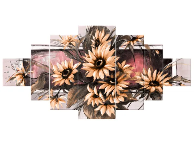 Úvod » Obrazy » Obrazy s hodinami » Obraz s hodinami Slnečnice v práškovo ružovej farbe