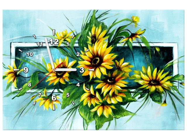 Úvod » Obrazy » Obrazy s hodinami » Obraz s hodinami Slnečnice v tyrkysovej farbe farbe