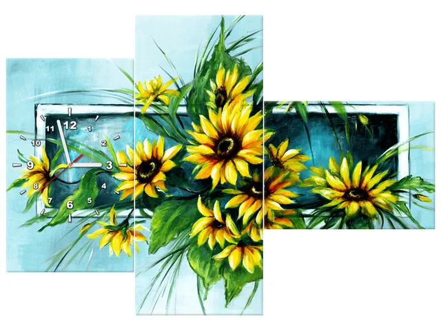 Úvod » Obrazy » Obrazy s hodinami » Obraz s hodinami Slnečnice v tyrkysovej farbe farbe