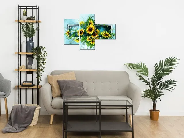 ZP4589A_3V Obraz s hodinami Slnečnice v tyrkysovej farbe farbe |
