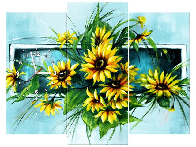 Úvod » Obrazy » Obrazy s hodinami » Obraz s hodinami Slnečnice v tyrkysovej farbe farbe