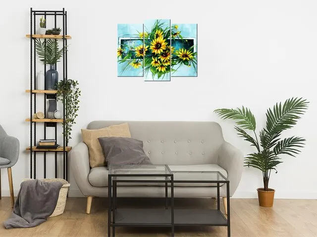 ZP4589A_3V Obraz s hodinami Slnečnice v tyrkysovej farbe farbe |