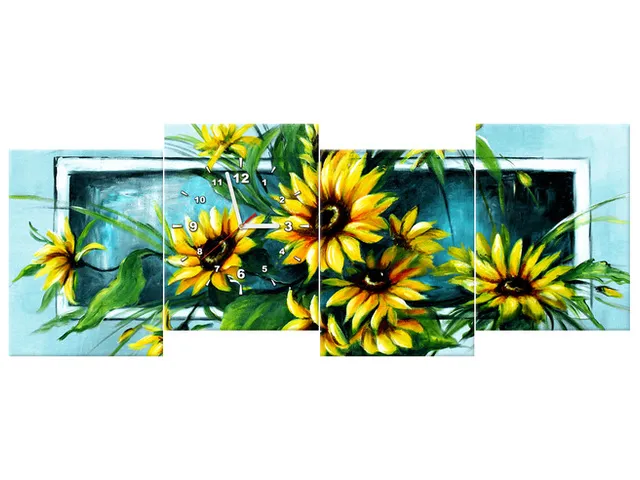 ZP4589A_2J Obraz s hodinami Slnečnice v tyrkysovej farbe farbe |