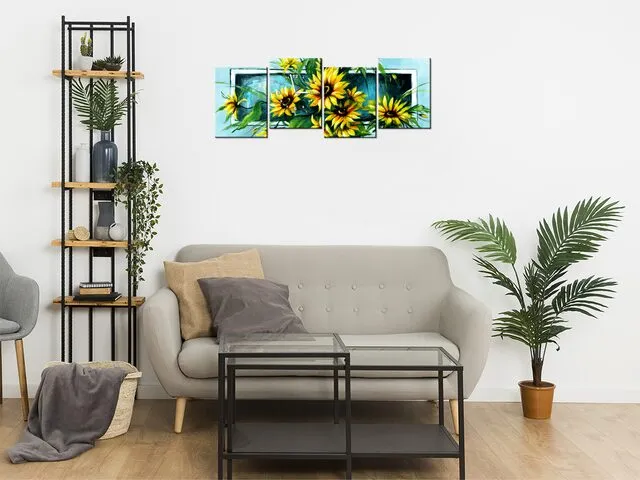 Úvod » Obrazy » Obrazy s hodinami » Obraz s hodinami Slnečnice v tyrkysovej farbe farbe