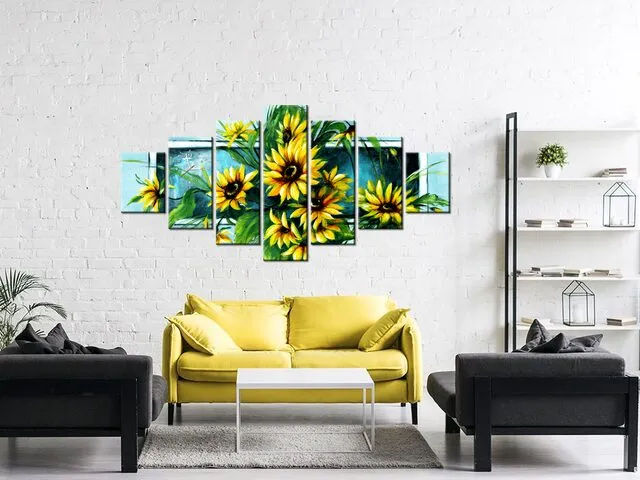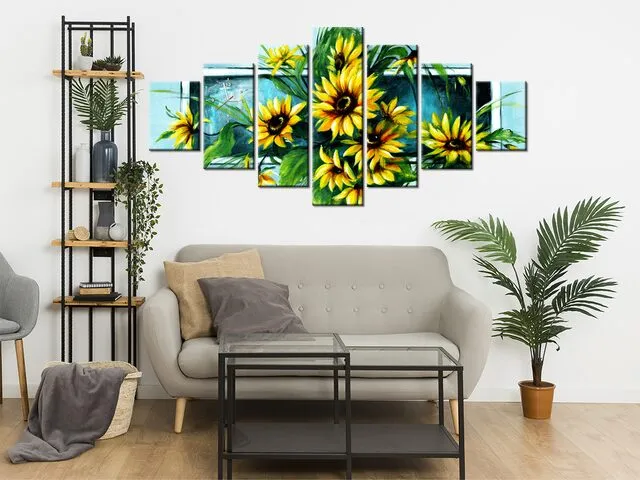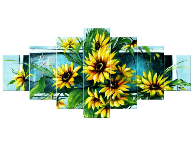 Obraz s hodinami Slnečnice v tyrkysovej farbe farbe