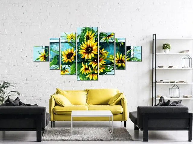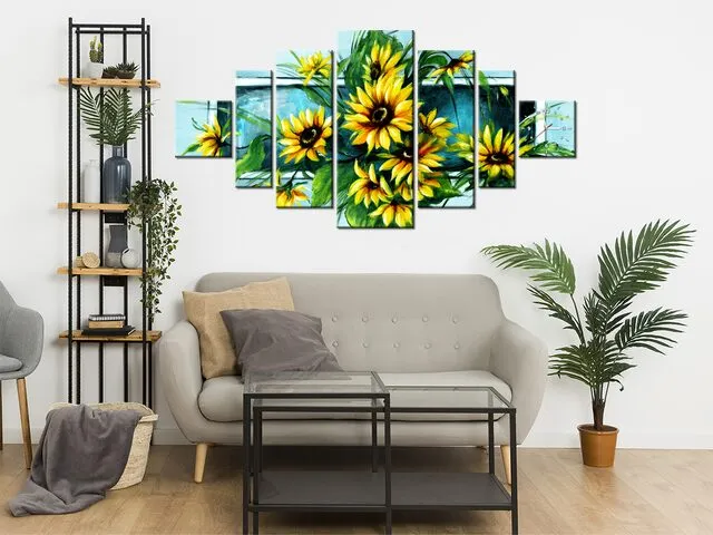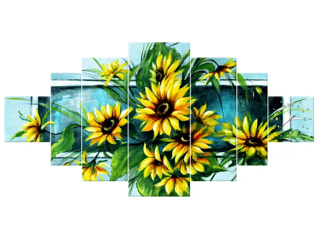 Úvod » Obrazy » Obrazy s hodinami » Obraz s hodinami Slnečnice v tyrkysovej farbe farbe