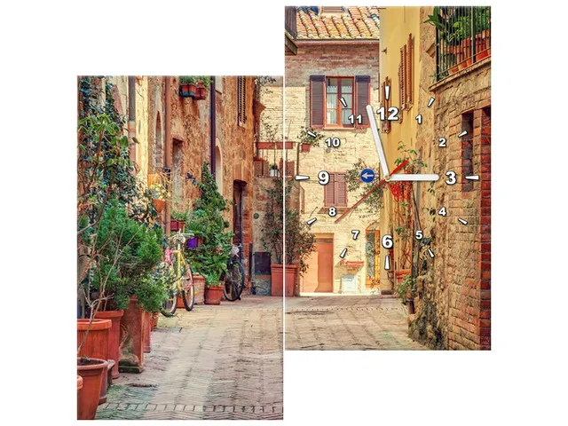Úvod » Obrazy » Obrazy s hodinami » Obraz s hodinami Stará ulička v Toskánsku