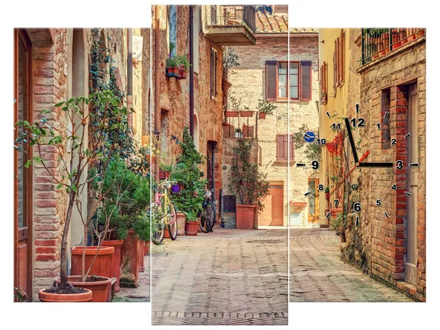 Úvod » Obrazy » Obrazy s hodinami » Obraz s hodinami Stará ulička v Toskánsku