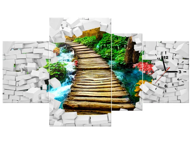 Úvod » Obrazy » Obrazy s hodinami » Obraz s hodinami Stena s výhľadom na most