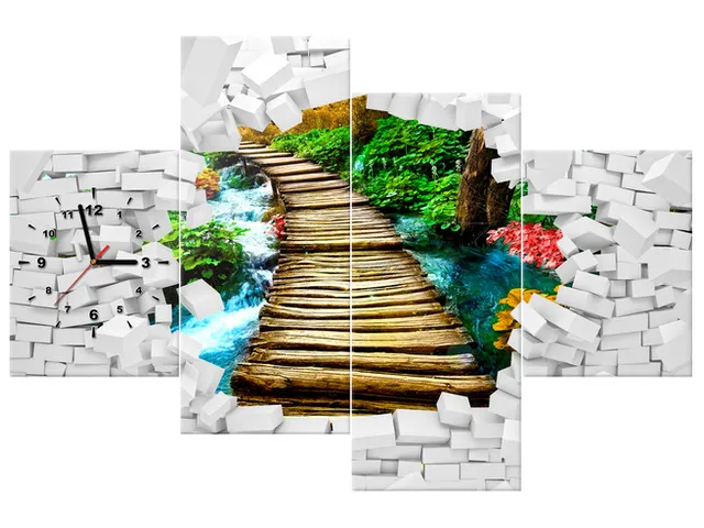 Úvod » Obrazy » Obrazy s hodinami » Obraz s hodinami Stena s výhľadom na most