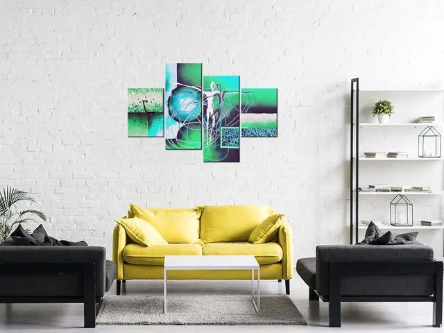 Úvod » Obrazy » Obrazy s hodinami » Obraz s hodinami Tancujúce postavy v tyrkysovej farbe