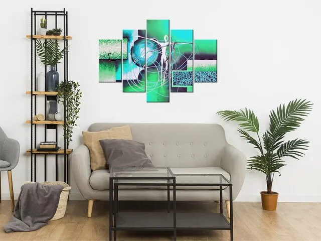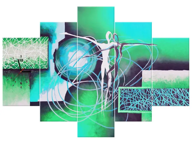 Úvod » Obrazy » Obrazy s hodinami » Obraz s hodinami Tancujúce postavy v tyrkysovej farbe