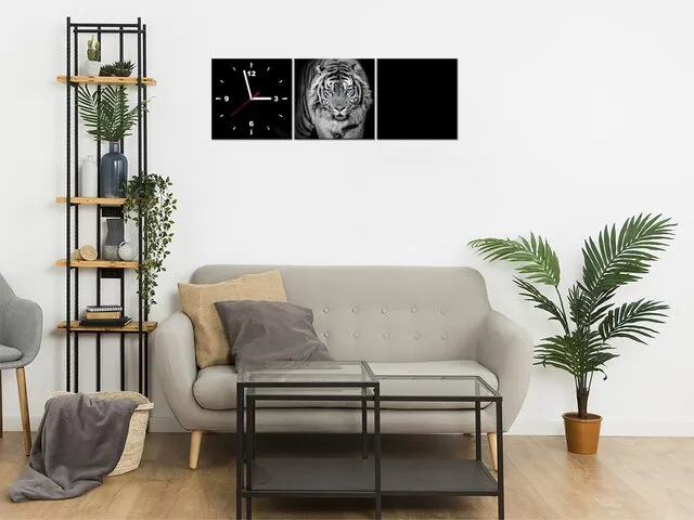 ZP4968A_3K Obraz s hodinami Tiger v tme modré oči |
