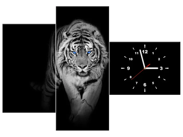Úvod » Obrazy » Obrazy s hodinami » Obraz s hodinami Tiger v tme modré oči