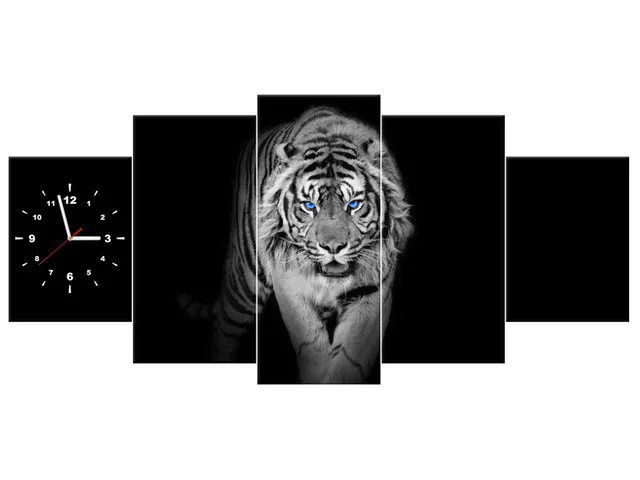 Barion Pixel Obraz s hodinami Tiger v tme modré oči
