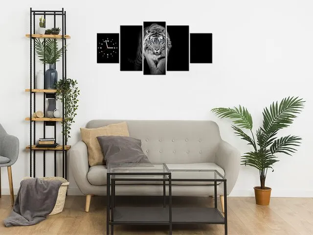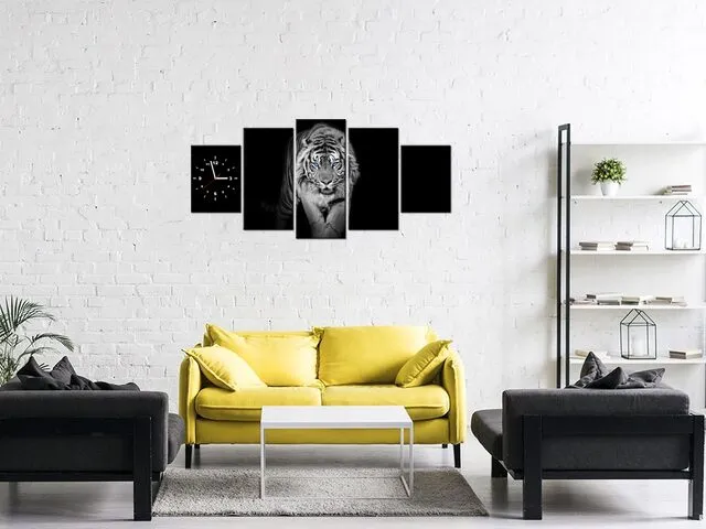 Úvod » Obrazy » Obrazy s hodinami » Obraz s hodinami Tiger v tme modré oči