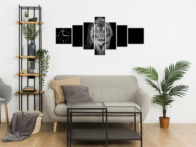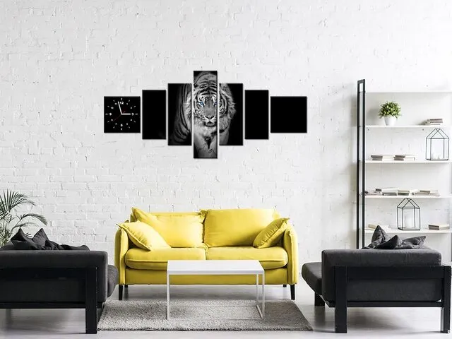 Úvod » Obrazy » Obrazy s hodinami » Obraz s hodinami Tiger v tme modré oči