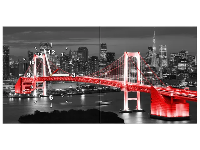 Úvod » Obrazy » Obrazy s hodinami » Obraz s hodinami Tokyo dúhový most v červenej