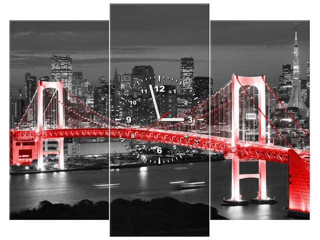 Úvod » Obrazy » Obrazy s hodinami » Obraz s hodinami Tokyo dúhový most v červenej