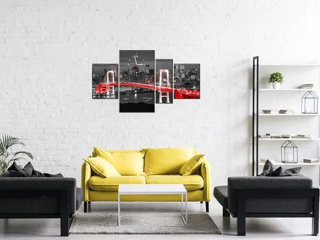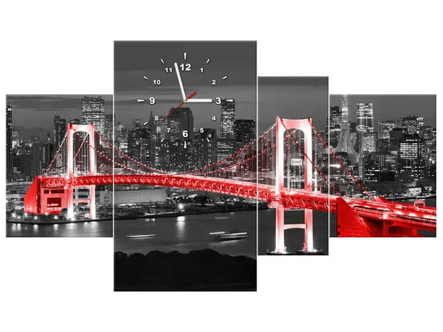 Úvod » Obrazy » Obrazy s hodinami » Obraz s hodinami Tokyo dúhový most v červenej