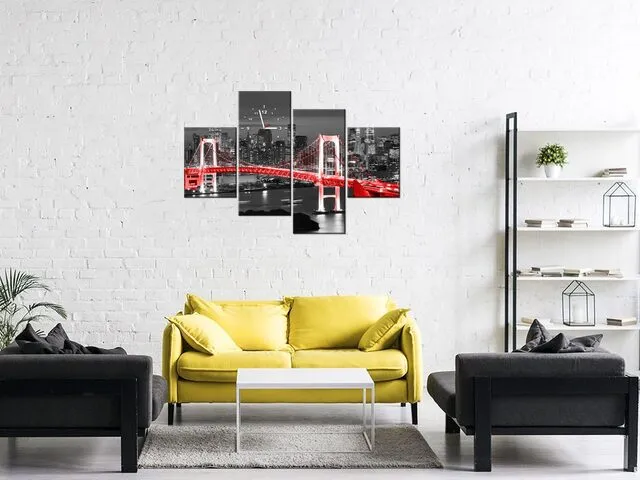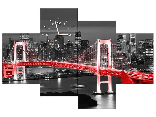 Úvod » Obrazy » Obrazy s hodinami » Obraz s hodinami Tokyo dúhový most v červenej