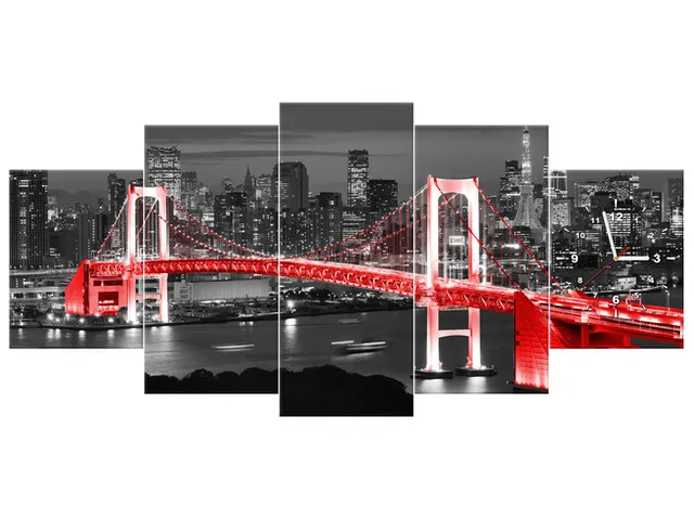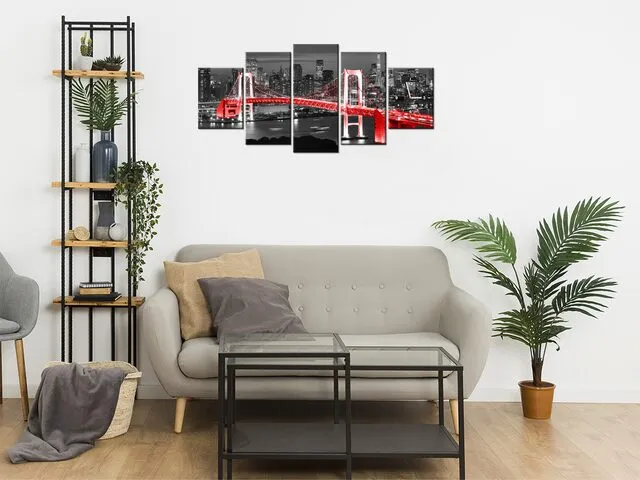 Úvod » Obrazy » Obrazy s hodinami » Obraz s hodinami Tokyo dúhový most v červenej