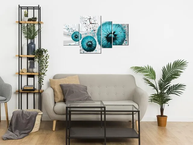 Úvod » Obrazy » Obrazy s hodinami » Obraz s hodinami Tyrkysové púpavy 2