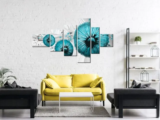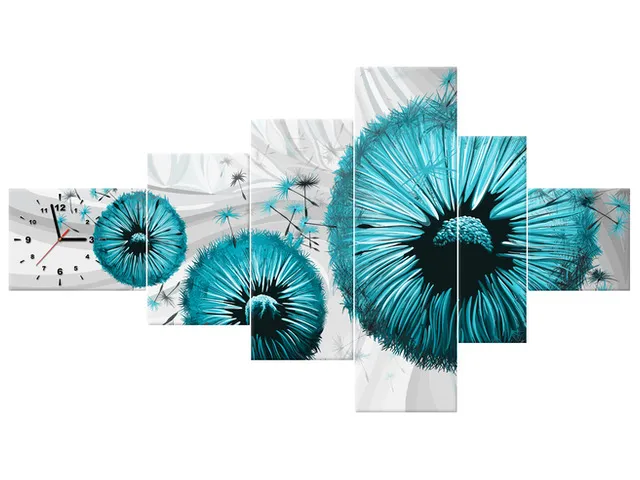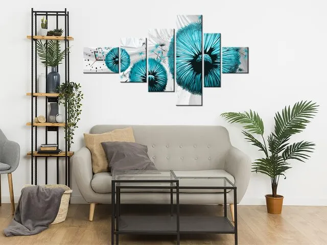 Úvod » Obrazy » Obrazy s hodinami » Obraz s hodinami Tyrkysové púpavy 2