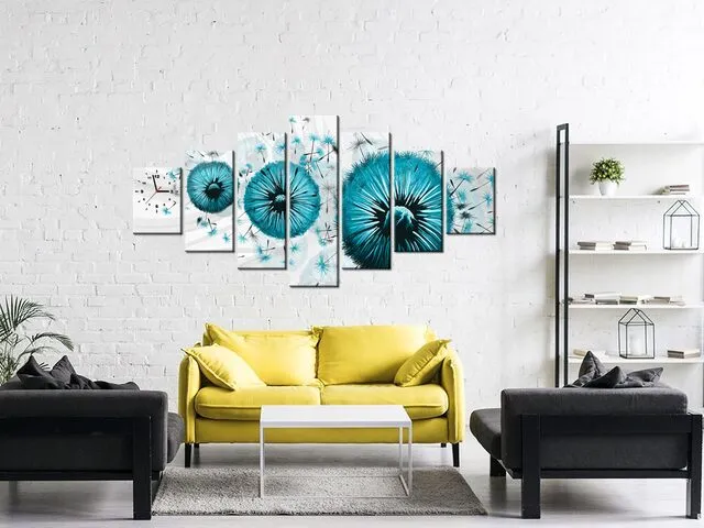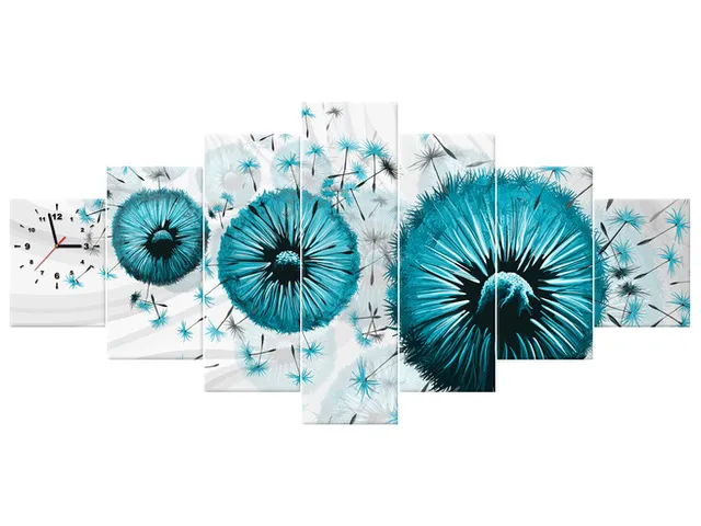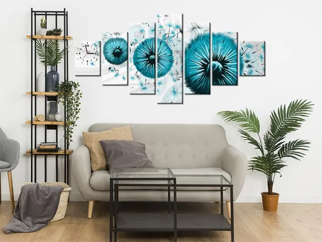 Úvod » Obrazy » Obrazy s hodinami » Obraz s hodinami Tyrkysové púpavy 5