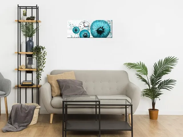 ZP5432A_5B Obraz s hodinami Tyrkysové púpavy |