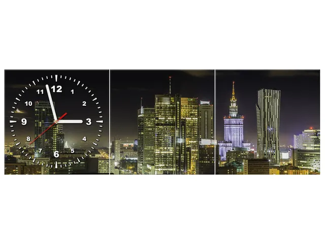 Úvod » Obrazy » Obrazy s hodinami » Obraz s hodinami Varšavské centrum v noci