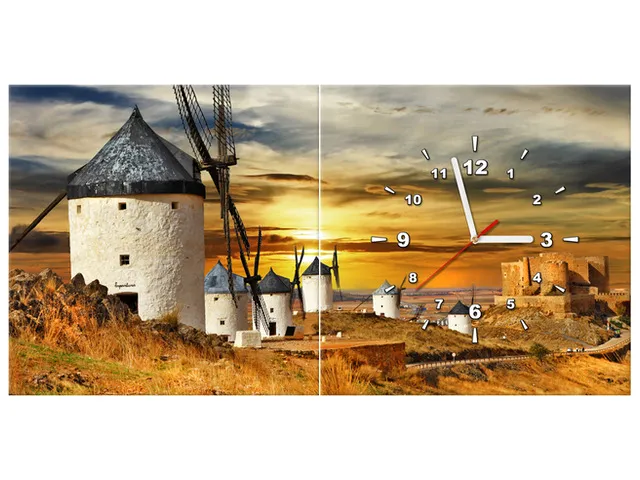 Úvod » Obrazy » Obrazy s hodinami » Obraz s hodinami Veterné mlyny v Španielsku