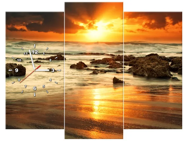 Úvod » Obrazy » Obrazy s hodinami » Obraz s hodinami Východ slnka nad rozbúreným oceánom