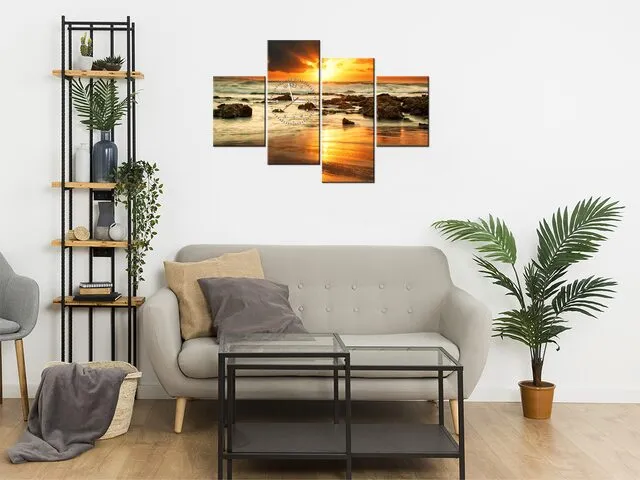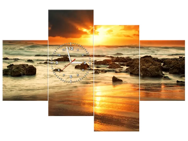Barion Pixel Obraz s hodinami Východ slnka nad rozbúreným oceánom