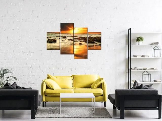 Úvod » Obrazy » Obrazy s hodinami » Obraz s hodinami Východ slnka nad rozbúreným oceánom