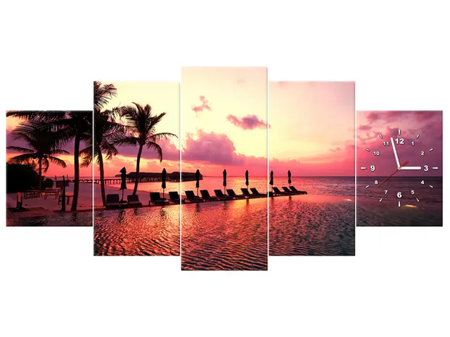 Úvod » Obrazy » Obrazy s hodinami » Obraz s hodinami Západ slnka na pláži v Maledivách