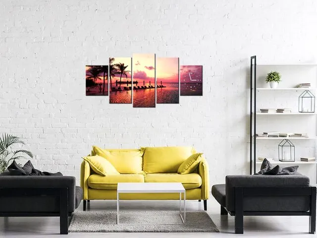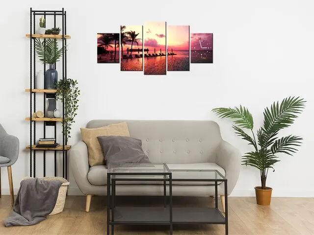 ZP4162A_4O Obraz s hodinami Západ slnka na pláži v Maledivách |