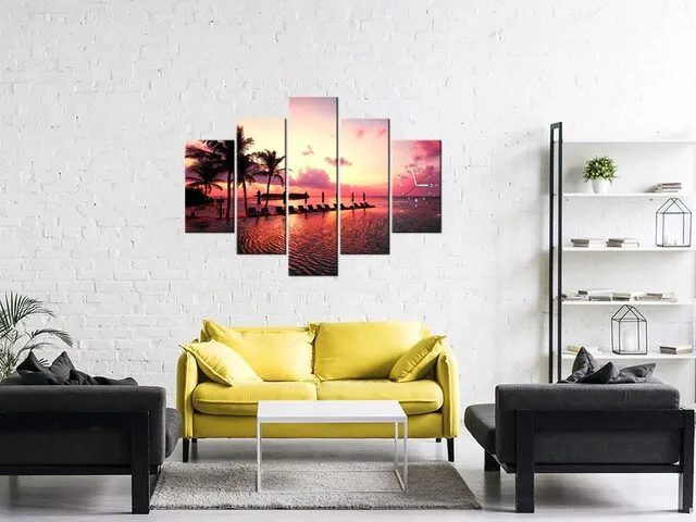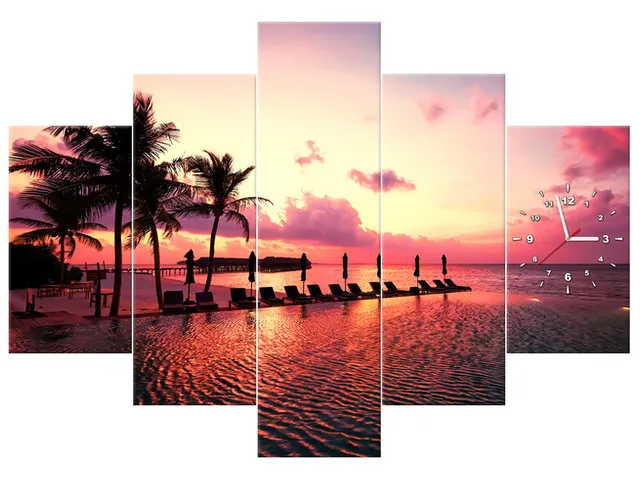 Barion Pixel Obraz s hodinami Západ slnka na pláži v Maledivách