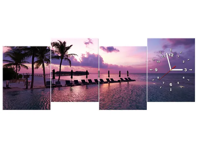 Úvod » Obrazy » Obrazy s hodinami » Obraz s hodinami Západ slnka na pláži v Maledivách