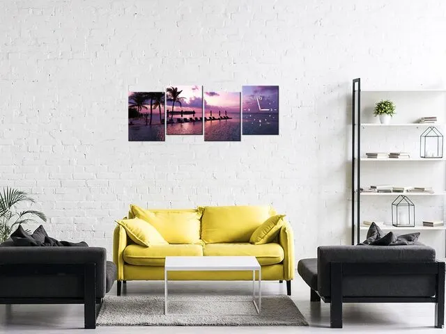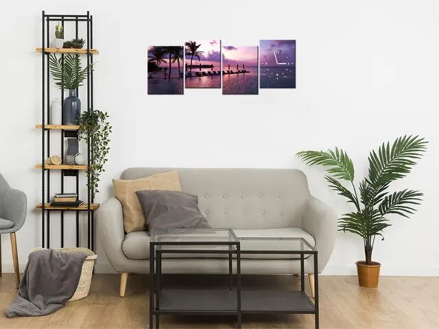 ZP3534A_4AN Obraz s hodinami Západ slnka na pláži v Maledivách |