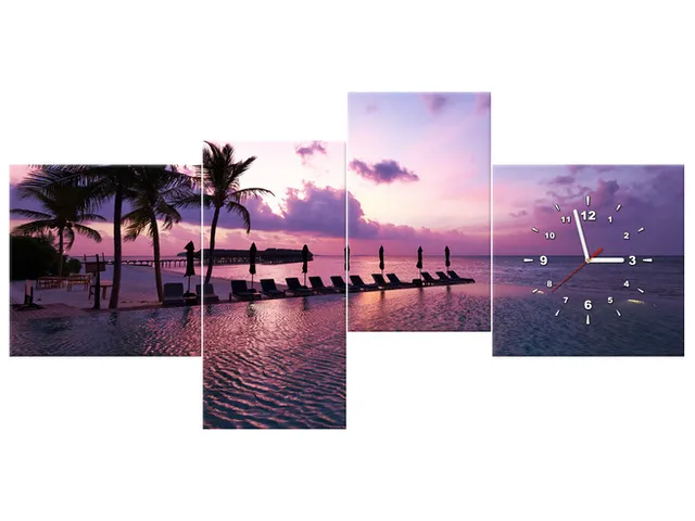 ZP3534A_4AS Obraz s hodinami Západ slnka na pláži v Maledivách |