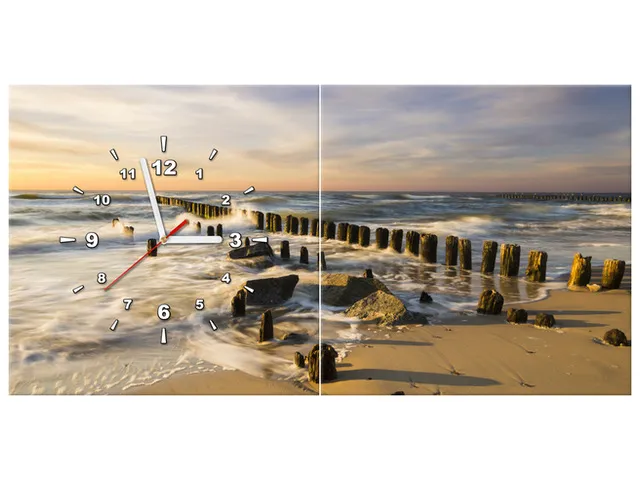Barion Pixel Obraz s hodinami Západ slnka nad morskou plážou