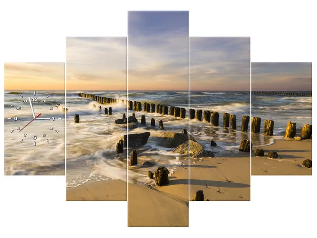 Úvod » Obrazy » Obrazy s hodinami » Obraz s hodinami Západ slnka nad morskou plážou