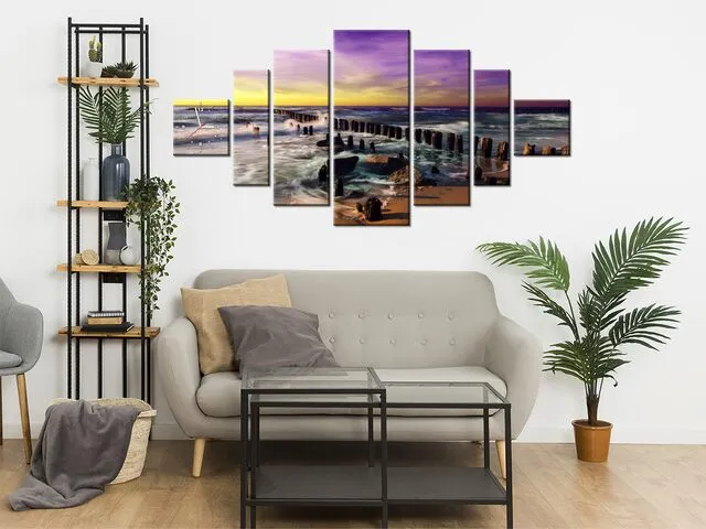 Úvod » Obrazy » Obrazy s hodinami » Obraz s hodinami Západ slnka nad morskou plážou s fialovou oblohou