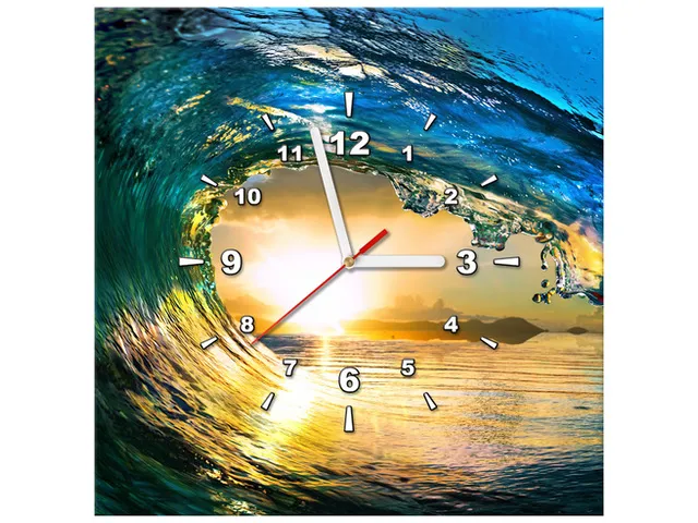 Úvod » Obrazy » Obrazy s hodinami » Obraz s hodinami Západ slnka v oku vlny