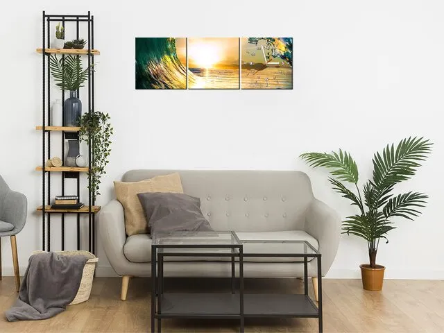 Úvod » Obrazy » Obrazy s hodinami » Obraz s hodinami Západ slnka v oku vlny