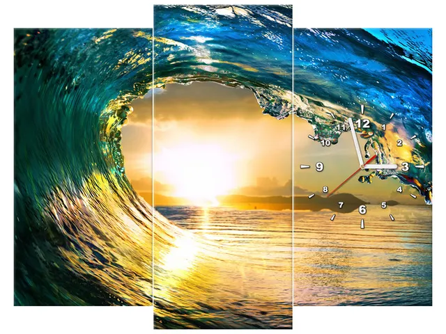 Úvod » Obrazy » Obrazy s hodinami » Obraz s hodinami Západ slnka v oku vlny