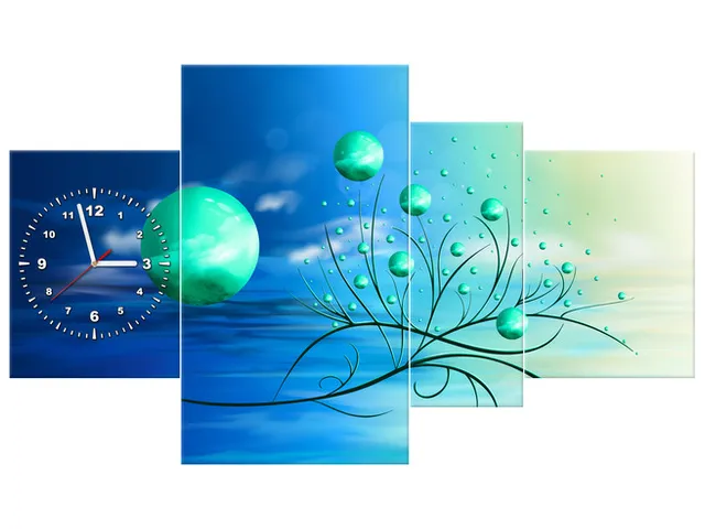 Úvod » Obrazy » Obrazy s hodinami » Obraz s hodinami Zelené gule v prameňoch ranného slnka
