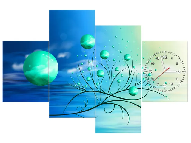 Úvod » Obrazy » Obrazy s hodinami » Obraz s hodinami Zelené gule v prameňoch ranného slnka